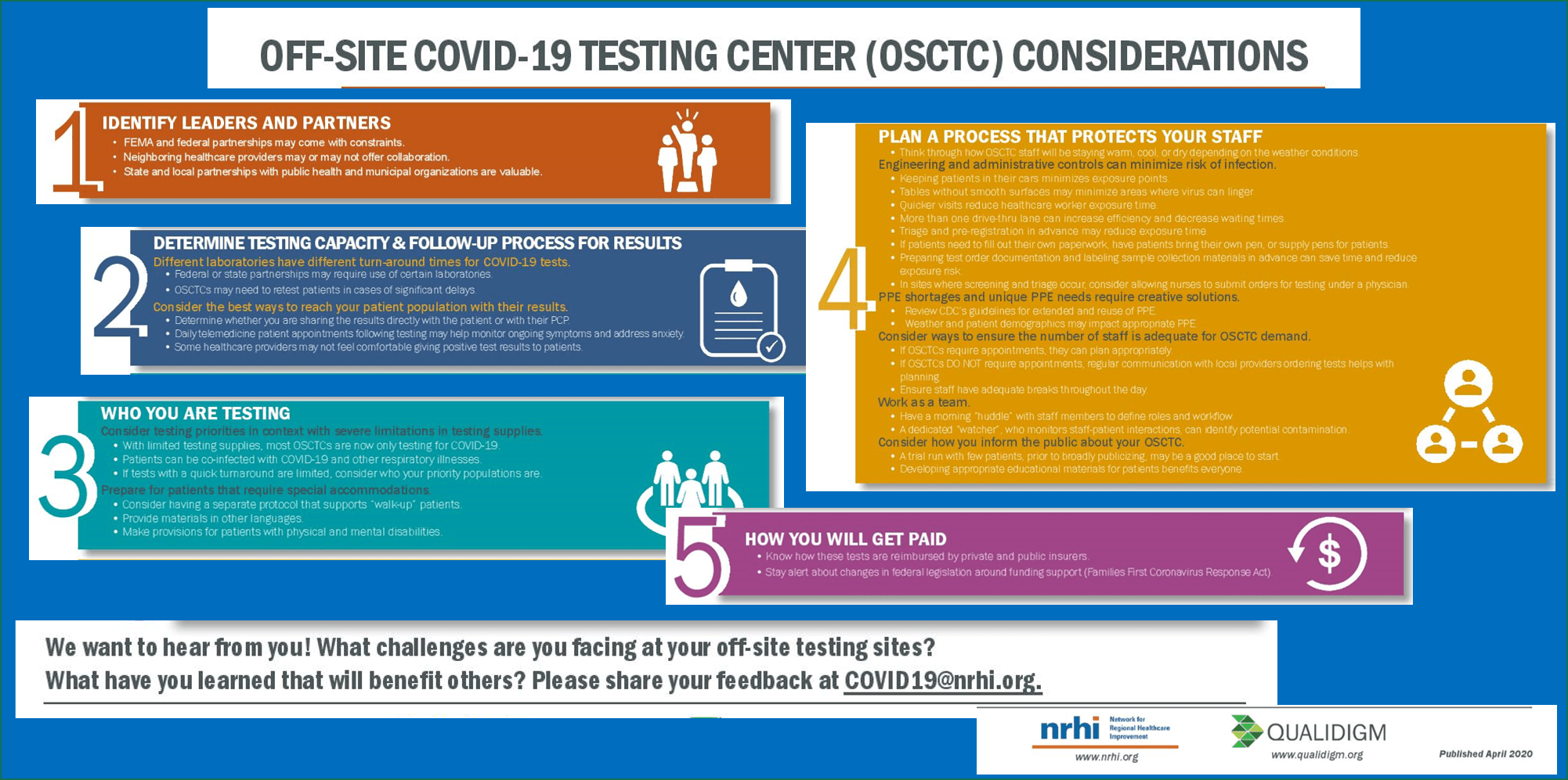 The Network for Regional Healthcare Improvement (NRHI) and Qualidigm, NRHI member, led a rapid assessment of COVID-19 off-site testing.