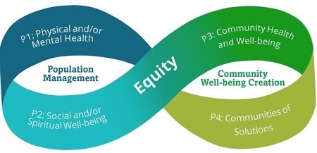 Pathways to Population Health: An Invitation to Health Care Change Agents was developed to support healthcare professionals in identifying opportunity for their organizations to make practical, meaningful, and sustainable advancements in improving the health and well-being of the patients and communities they serve. P2PH has identified four portfolios of work health care organizations can undertake to accelerate their progress in improving health, well-being and equity.